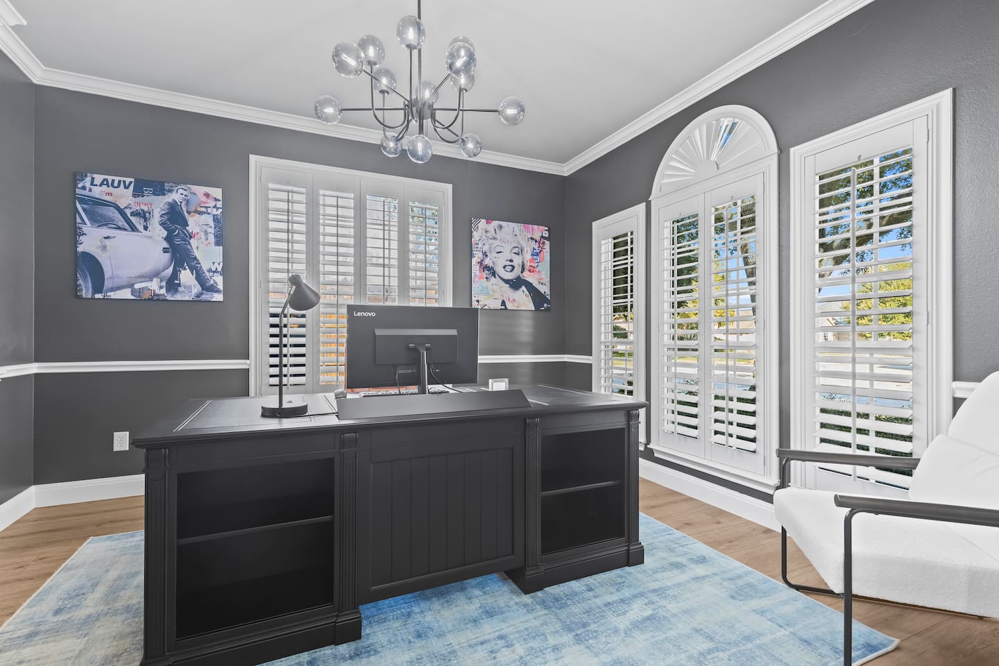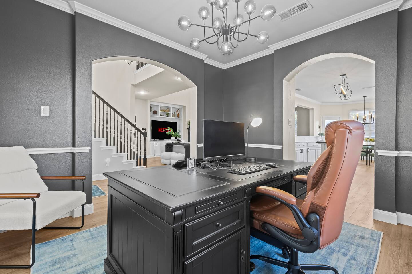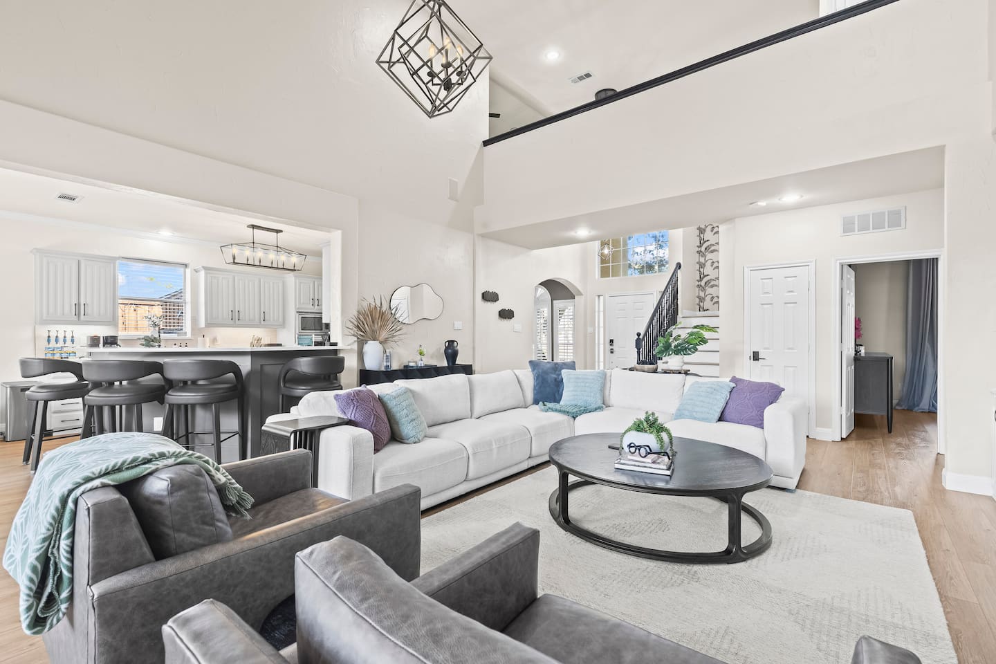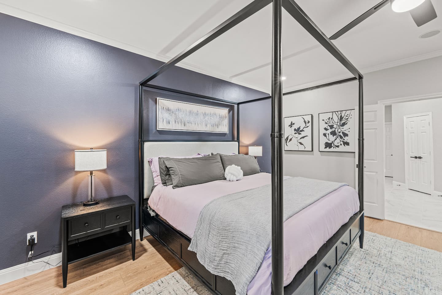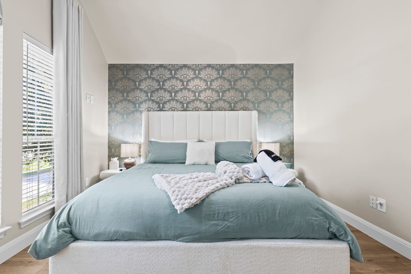 Welcome to The Palmera, a luxury retreat in Frisco’s Plantation Resort golf community! Relax in the heated pool, spa, sauna, or outdoor shower, watch movies outside while making s'mores, and enjoy outdoor bowling, skee ball, lawn games, and 2 putting greens. Inside, the game room offers foosball, ping pong, arcade classics, Xbox, Nintendo Switch & board games, plus a separate workspace with fast Wi-Fi. Close to shopping, dining, and top golf courses including PGA Frisco & TPC Craig Ranch!