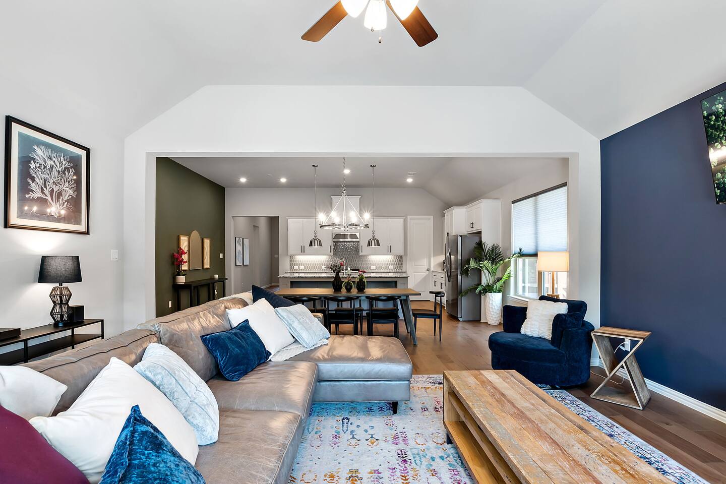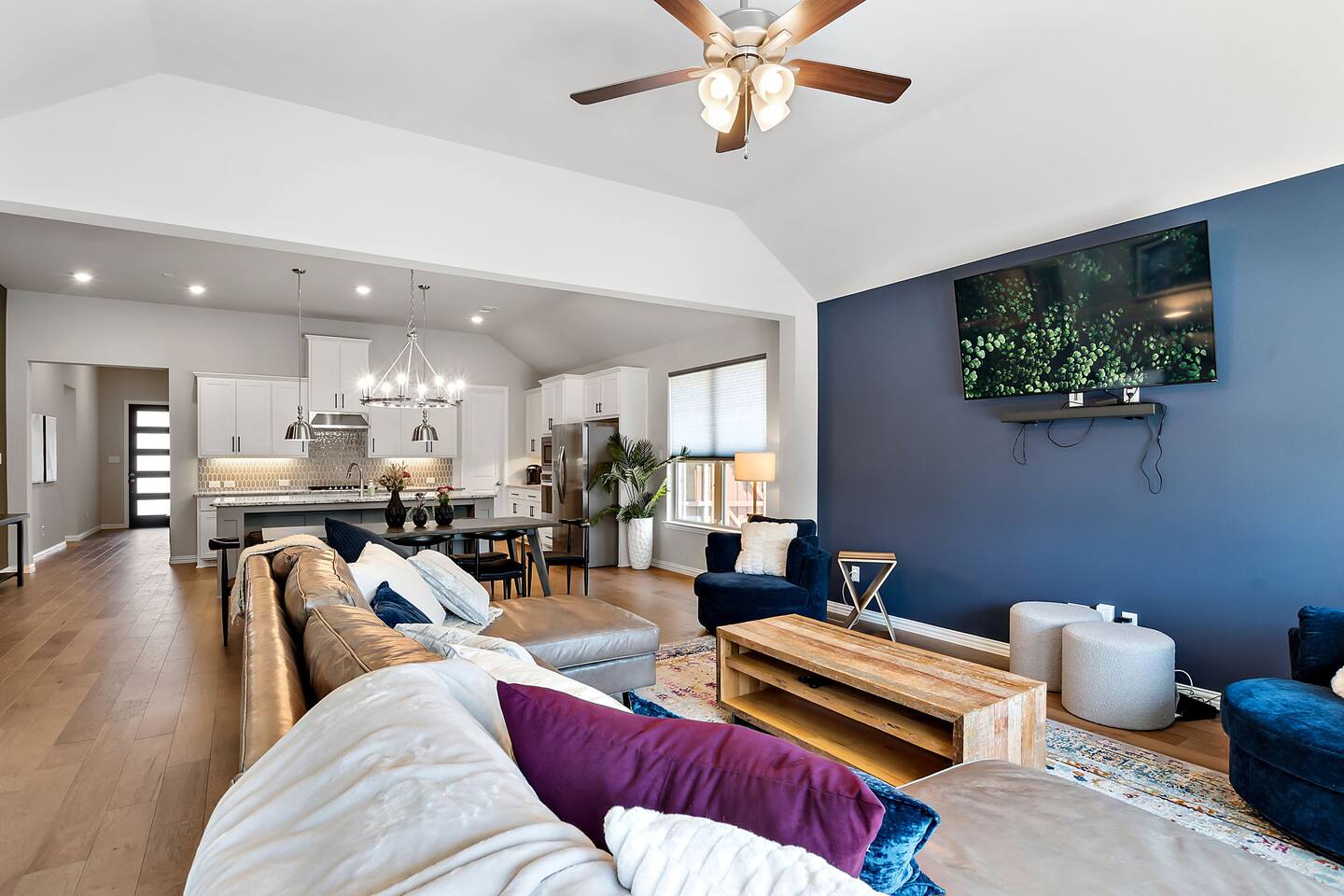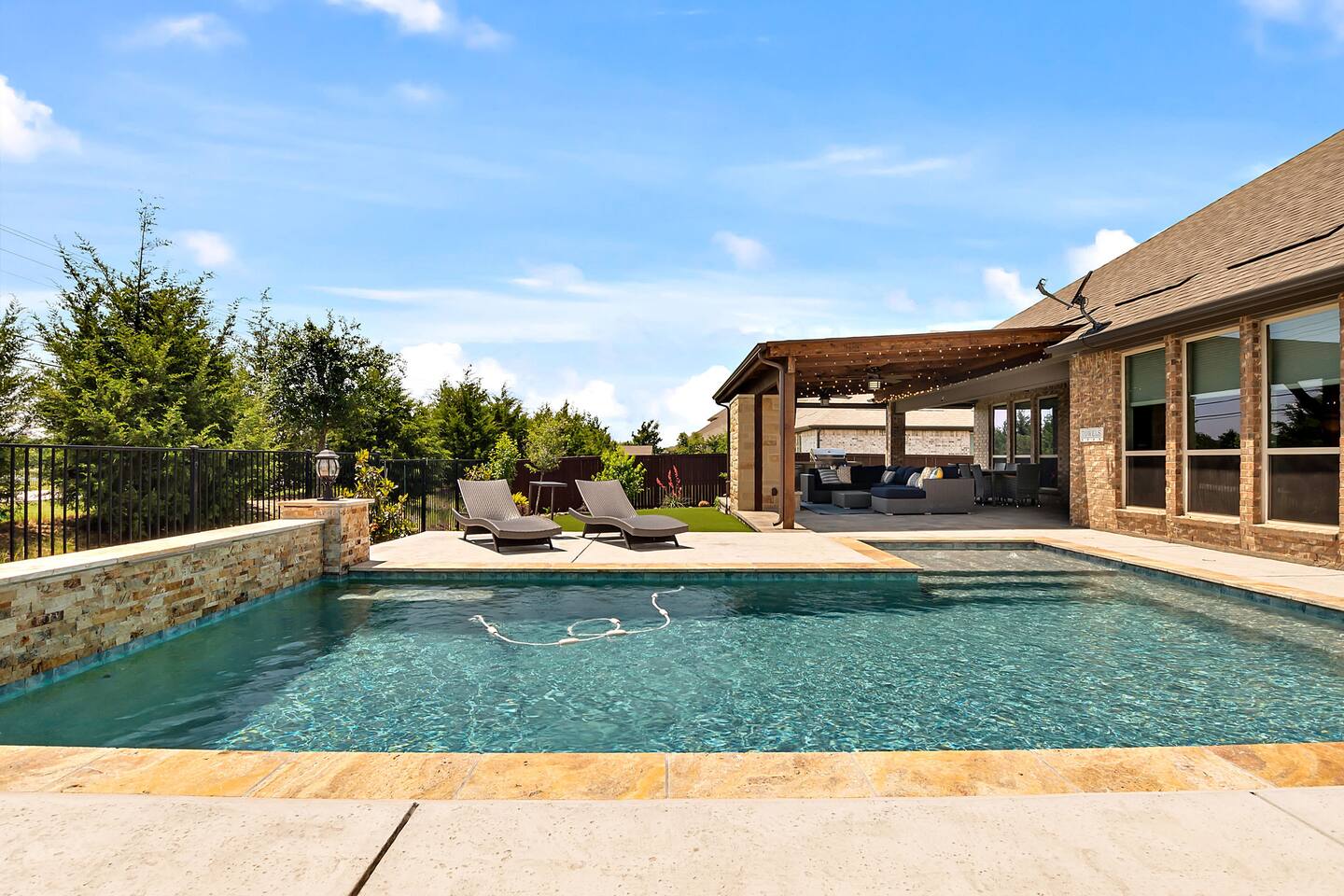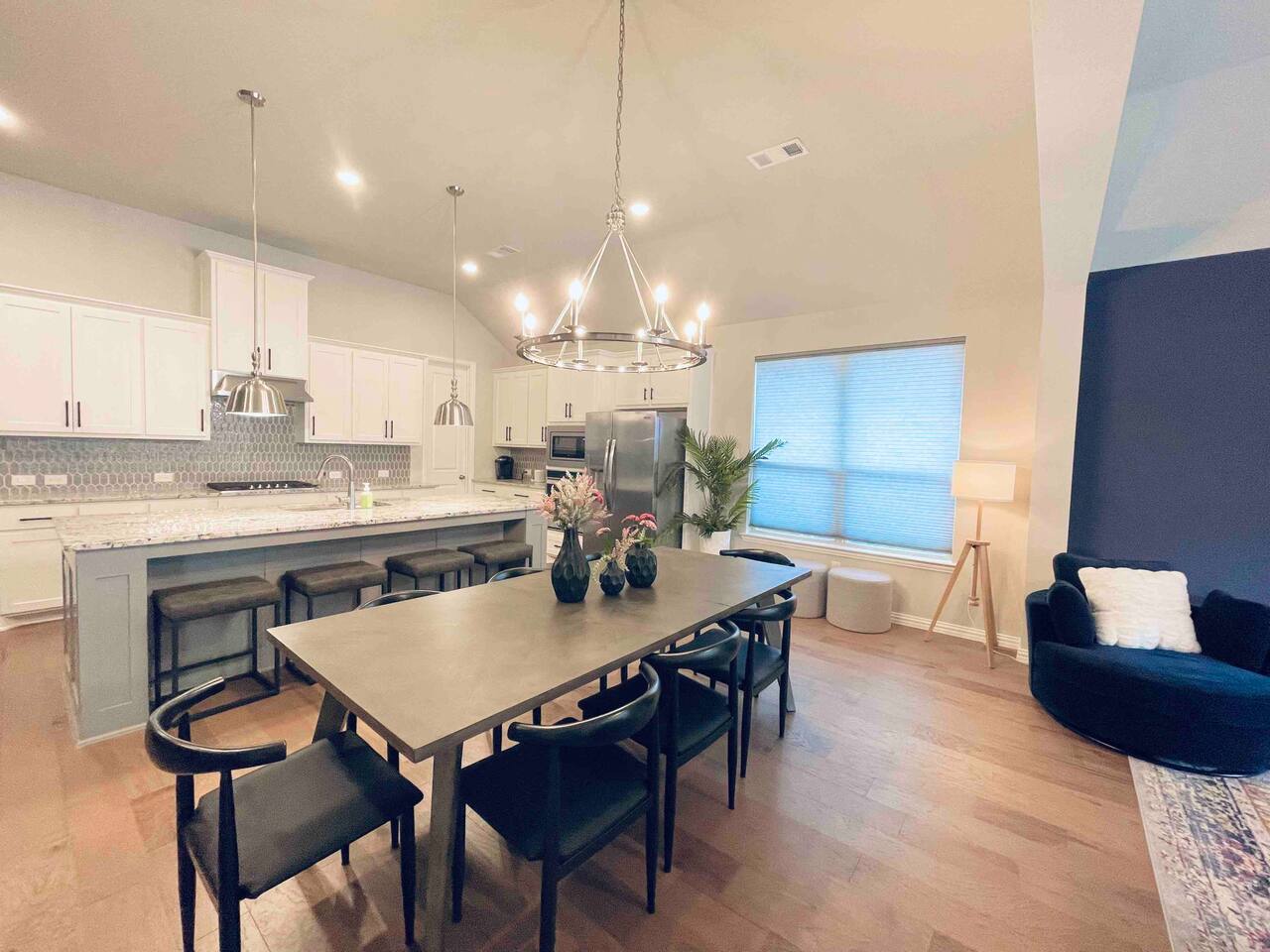 Welcome to this immaculate brand new construction one-level home boasting all the comforts of a luxury resort. Enjoy brand-new plush beds & linens, every room is provided with a tv. Oasis-style living in the backyard! The clean outdoor space includes a massive covered patio w/ fans, sunshades, TV, pool w/ splash pad, lounge beds, turf yard, outdoor kitchen, fire pit, floats, games, and more! The pool is sure to be a family favorite because the backyard gets sun all day!