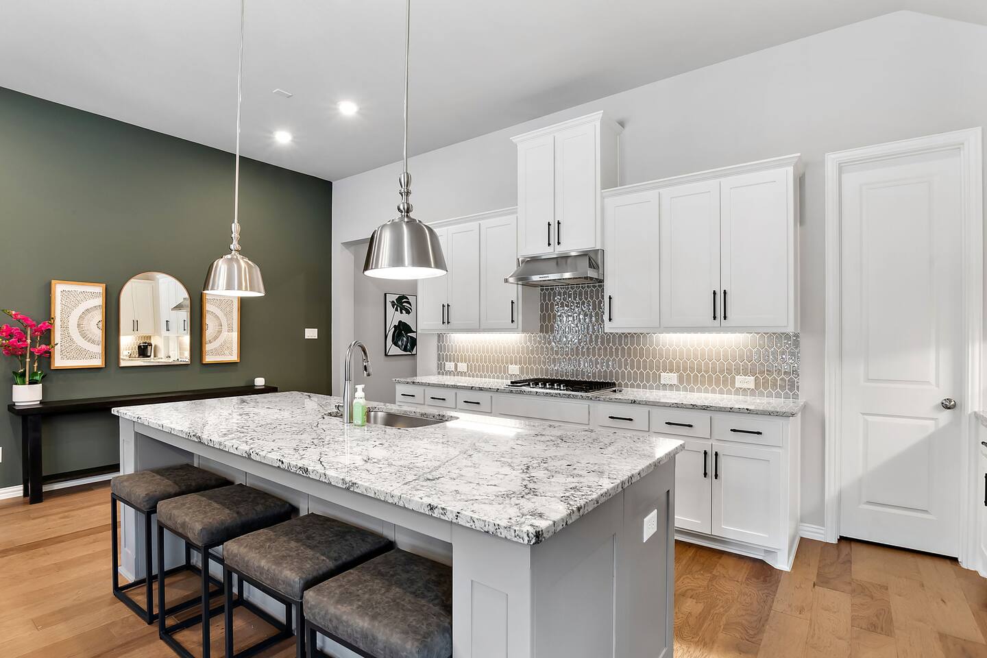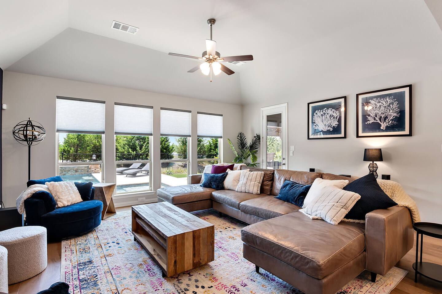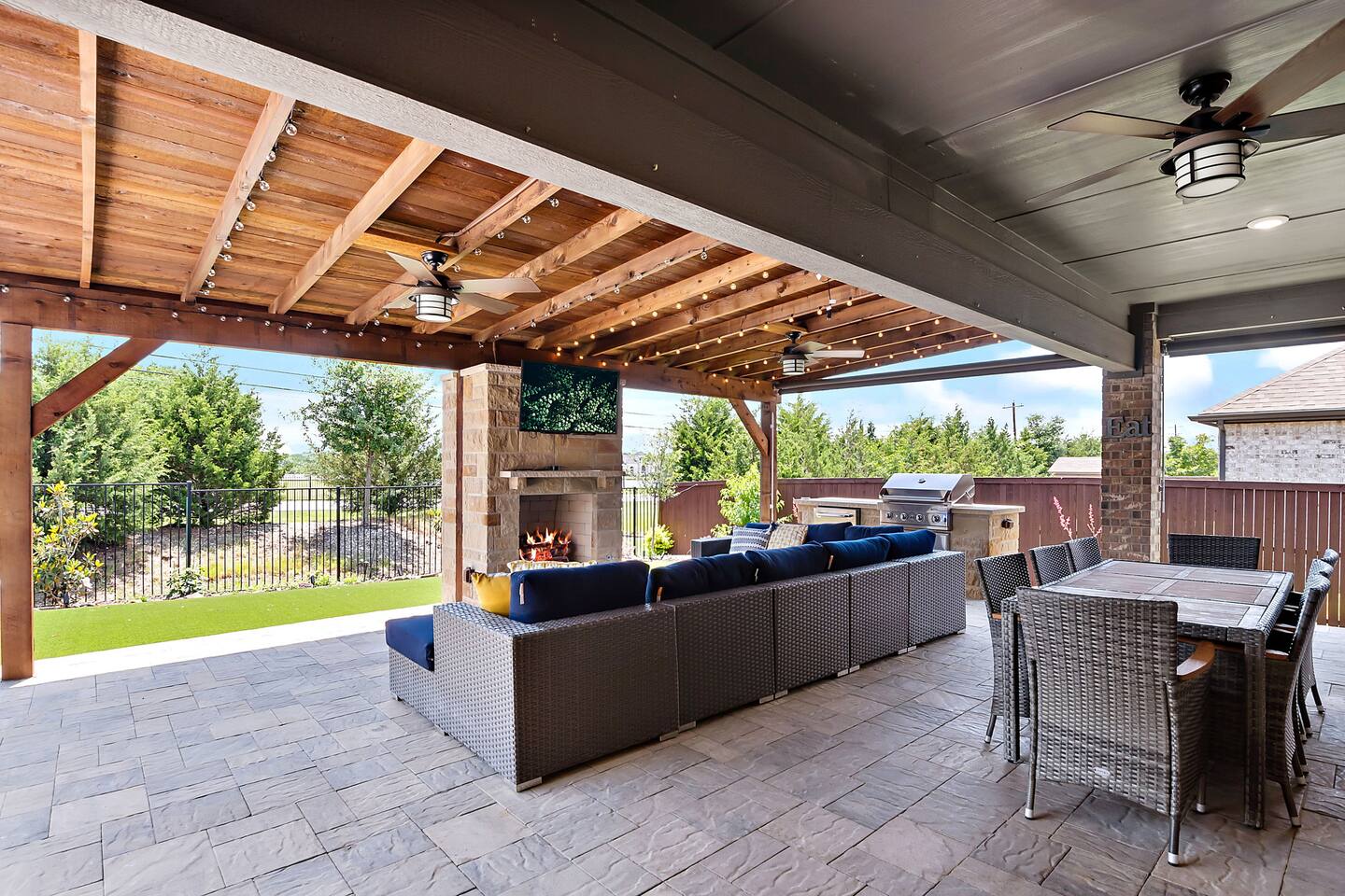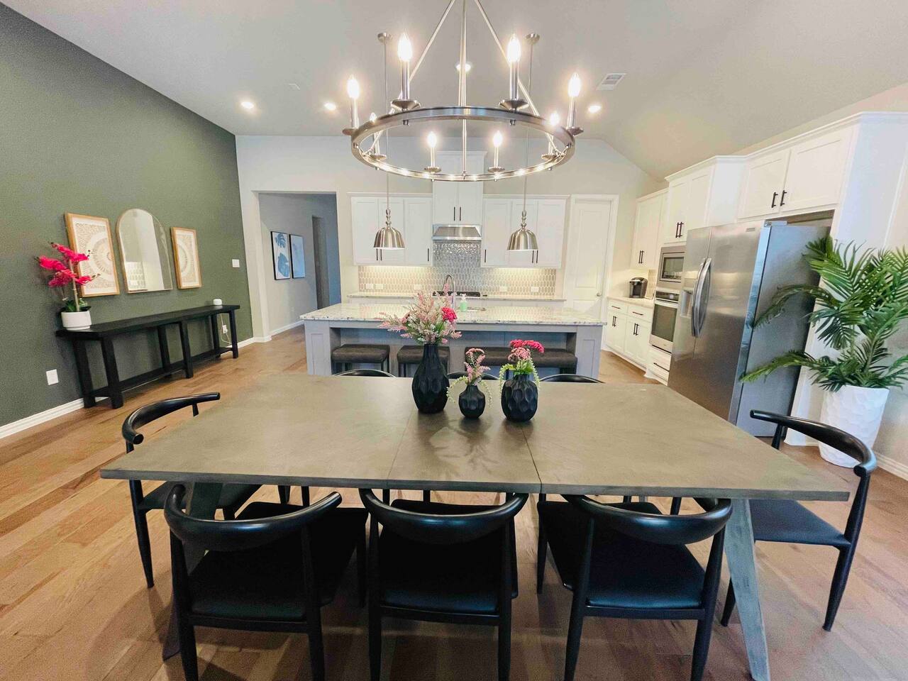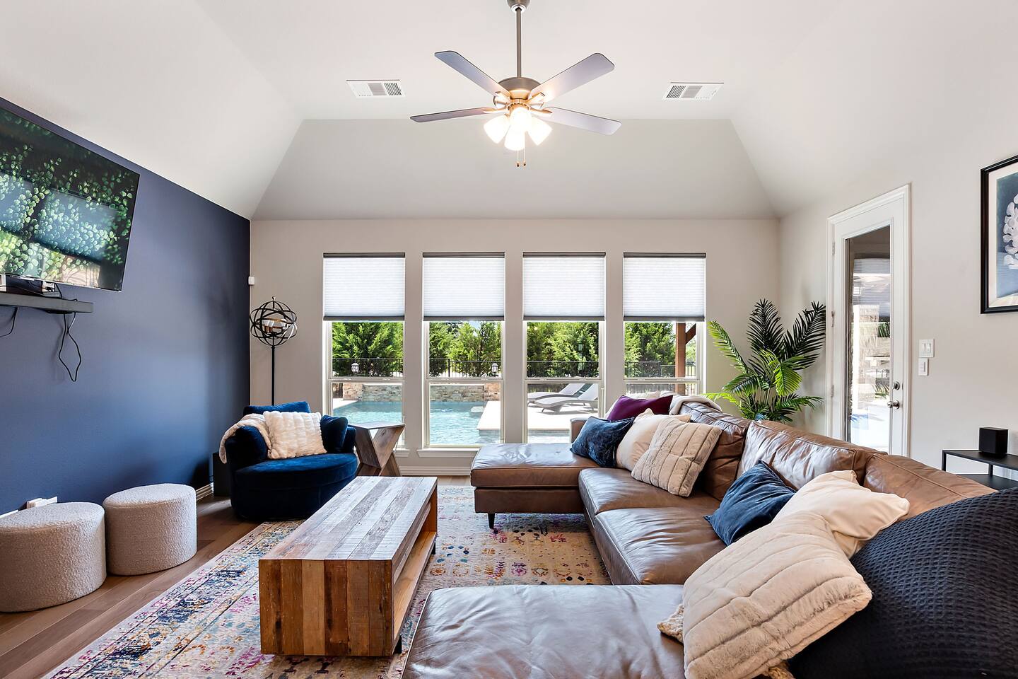 Welcome to this immaculate brand new construction one-level home boasting all the comforts of a luxury resort. Enjoy brand-new plush beds & linens, every room is provided with a tv. Oasis-style living in the backyard! The clean outdoor space includes a massive covered patio w/ fans, sunshades, TV, pool w/ splash pad, lounge beds, turf yard, outdoor kitchen, fire pit, floats, games, and more! The pool is sure to be a family favorite because the backyard gets sun all day!