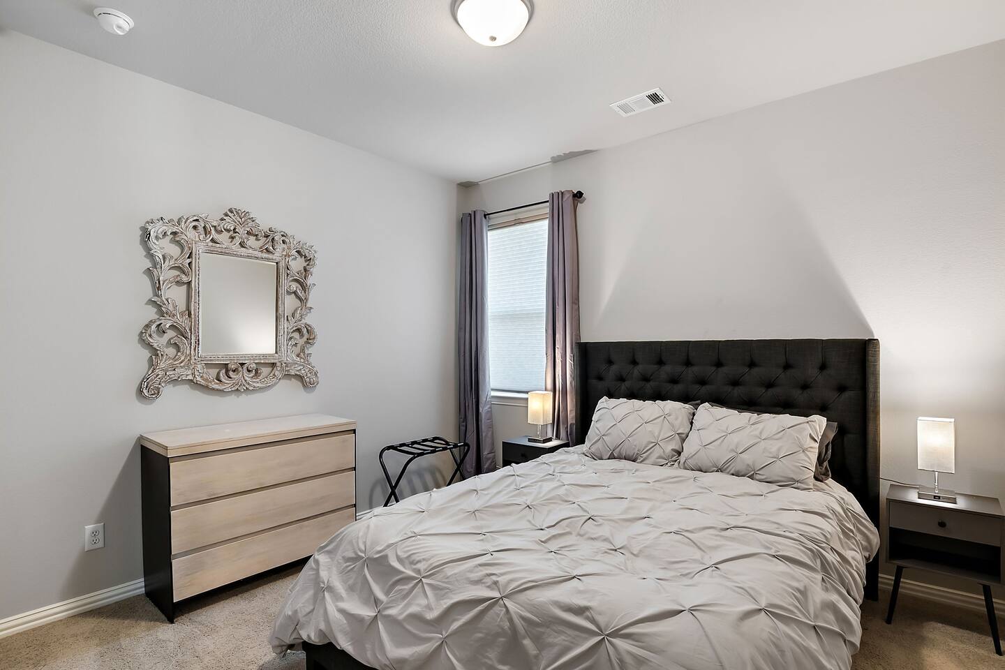 All bedrooms have blackout curtains, extra linens and pillows. Master bedroom has crib ready for use. Addtl pack-n-play can be used if requested. Both bathrooms have plenty of towels, shower soap/shampoo, and hair dryers. Kitchen is fully stocked with all bake wear and cookware, coffee maker + coffee pods, toaster, utensils, bbq tools, and even dinnerwear for the little ones (plastic colorful plates and utensils). Kitchen also has a full set of plastic wear for outdoor use, as we do not allow any glass or breakables in the back patio or yard outside for safety reasons. Dishwasher pods also included for your use. Laundry room is stocked with detergent and oxyclean for your convenience. Baby and kid amenities including high chair (can be taken outside also), pack n play to keep baby safe on shaded patio, crib, games, and toddler toys. Pets on case by case basis. Fees apply